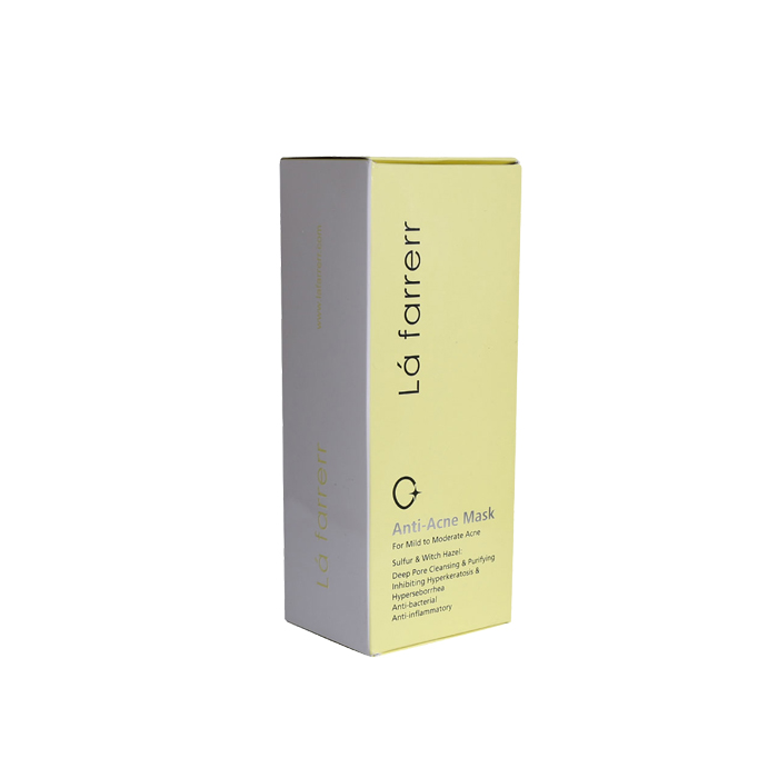 ماسک ضد آکنه لافارر حاوی مواد موثر گوگرد، عصارههای گیاهی هاماملیس، چای سبز، بابونه، نشاسته ذرت اصلاح شده، کائولین و زینک پی سی آ است. این محصول با فرمولاسیون جدید و منحصر به فرد به رفع آکنههای ضعیف تا متوسط میپردازد. همچنین در فرمولاسیون این ماسک گوگرد به چشم میخورد که با قدرت نفوذپذیری بیشتر به منافذ پوست، اثر گذاری بهتری را به ارمغان میآورد. این محصول به صورت ماسک تهیه شده است تا به مدت زمان بیشتری روی صورت بماند و اثر گذاری بیشتری داشته باشد. بوی بد گوگرد در این ماسک بهبود یافته تا مصرف کنندگان بوی مطبوعی را استشمام کنند. این کرم برای صورت، گردن، نواحی سینه و پشت بدن قابل استفاده است.