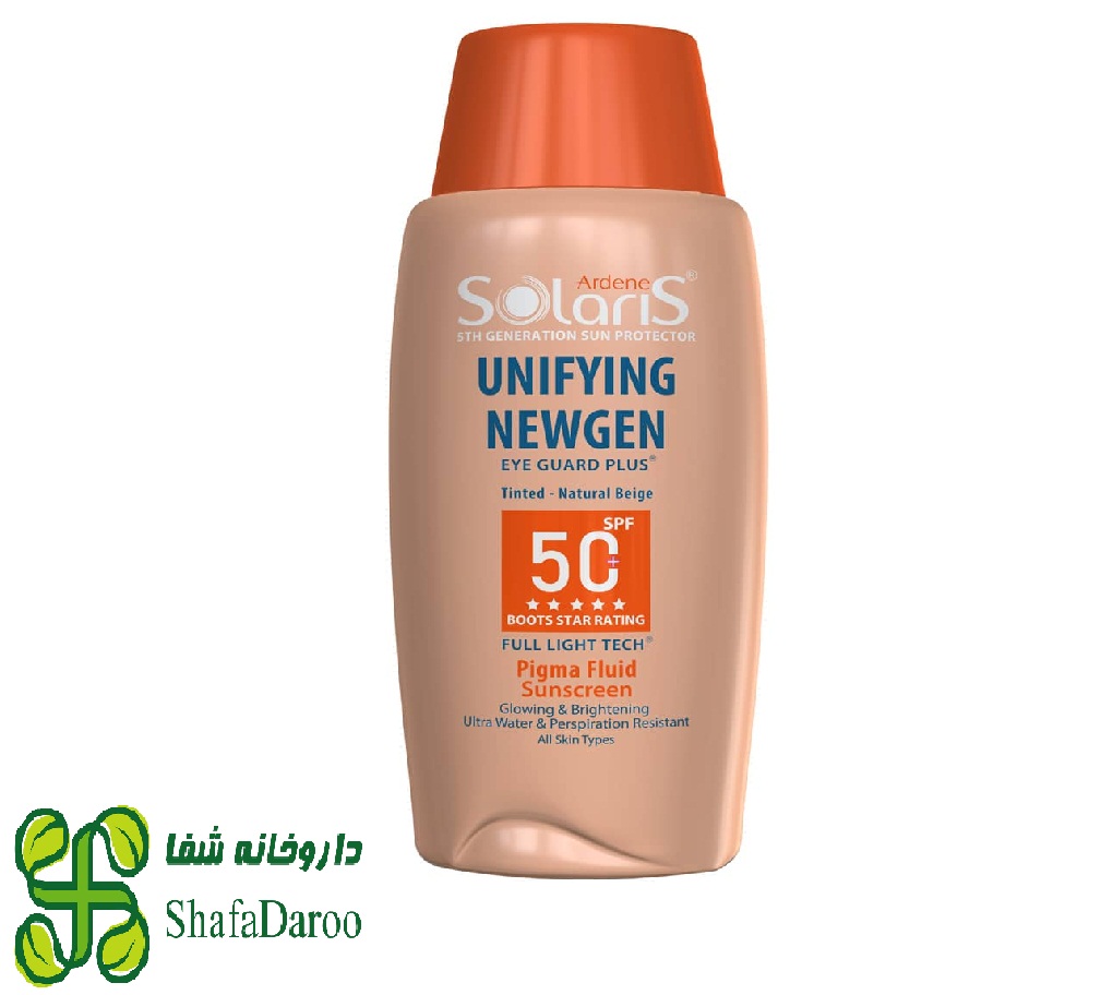 فلوئید روشن کننده یونیفای نیوژن با دارا بودن SPF50 از پوست در برابر اشعه های مضر UVB ،UVA ،IR محافظت کرده و به تدریج لکه های ناشی از نور خورشید را از بین می برد و رنگ صاف و یکنواختی را بر روی پوست شما ایجاد می کند. ضد آفتاب آردن سولاریس برای افرادی که دچار هایپرپیگمنتیشن یا پیگمانتاسیون (تیره و روشن تر شدن در برخی نواحی پوست) ملاسما یا لکه های تیره ناشی از جای زخم و جوش هستند، بسیار مناسب است.