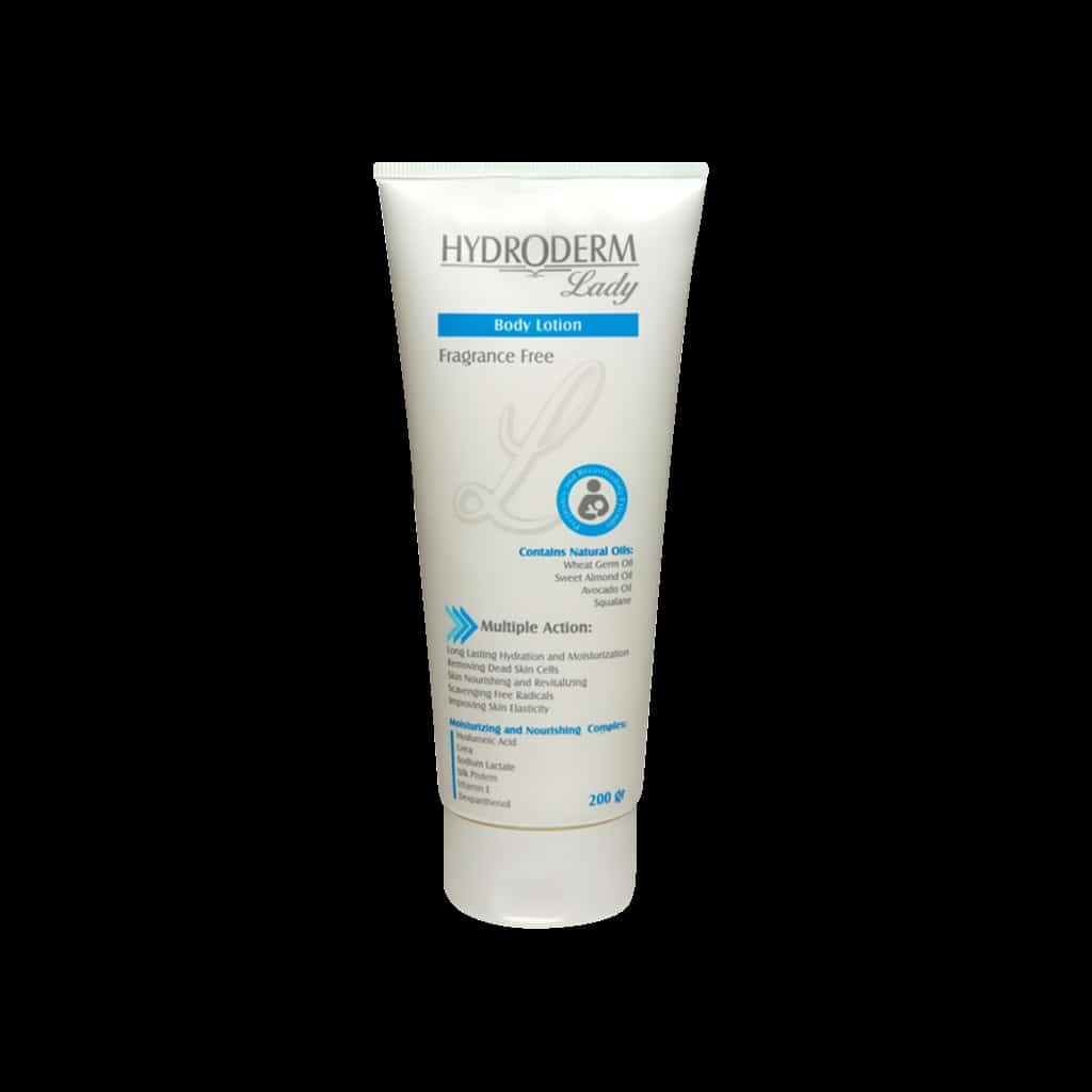 لوسیون بدن هیدرودرم بر پایه کمپلکس مرطوب کننده و مغذی اسید هیالورونیک، لاکتات سدیم، اوره، پروتئین ابریشم و سرشار از روغن های طبیعی و گیاهی موجب تامین رطوبت مورد نیاز پوست گشته، از دفع آب میان بافتی و در نتیجه خشکی تدریجی پوست بدن جلوگیری به عمل آورده، الاستیسیته و انعطاف پذیری آن را تقویت نموده و با کاهش خشکی و خارش سبب افزایش نرمی و لطافت پوست بدن می گردد. لوسیون بدن هیدرودرم فاقد اسانس و مواد آلرژی زا بوده و جهت رفع خشکی، خارش و دهیدراتاسیون پوستی و همچنین تامین رطوبت مورد نیاز پوست بدن در طی دوران بارداری توصیه می گردد.