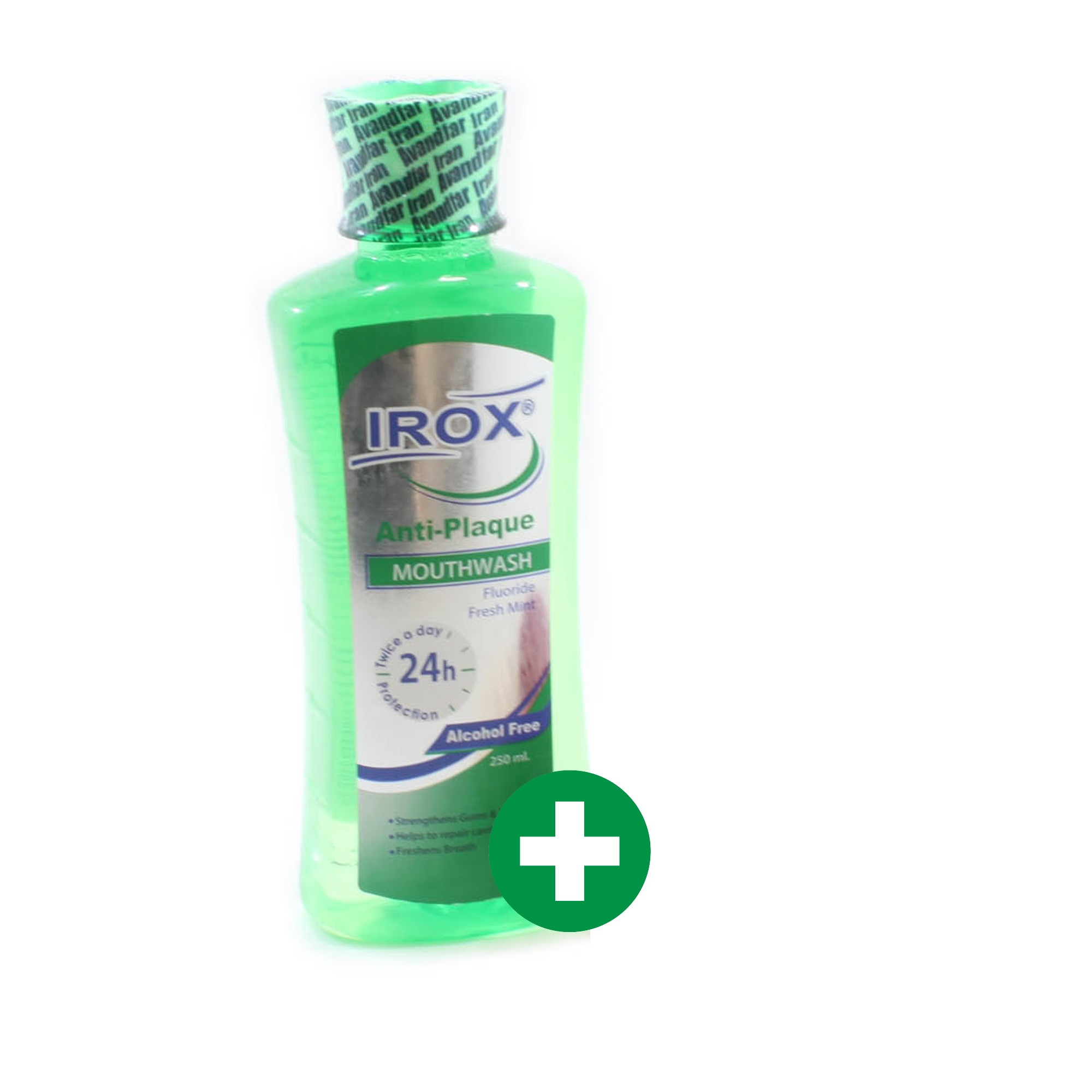 این دهانشویه بواسطه ترکیبات باکتریال خود که اغلب منشاء گیاهی دارند با از بین بردن و کاهش میکروب های دهان نه تنها مانع بروز پوسیدگی دندان و بیماری لثه می گردد بلکه موجب التیام بعضی از بیماریهای لثه و باعث بازگشت به حالت طبیعی می شود. دهانشویه آنتی پلاک ایروکس با از بین بردن میکروب های مولد بوی نامطبوع دهان را تازه و خوشبو می کند. استفاده از این محلول فاصله بین حملات آفت را طولانی تر کرده و همچنین تعداد حملات را کاهش داده و وسعت ضایعات آفتی و درد آن را کاهش می دهد.